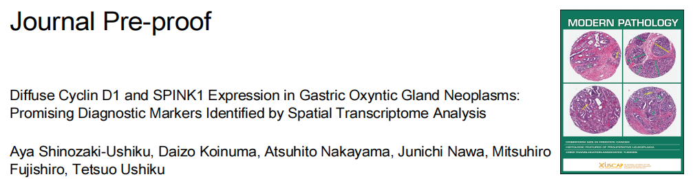 【文獻題目】Diffuse Cyclin D1 and SPINK1 Expression in Gastric Oxyntic Gland Neoplasms: